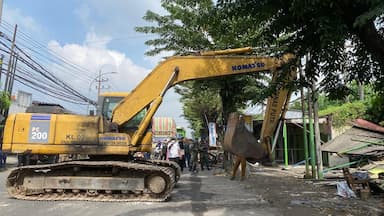 Penertiban bangunan liar kembali dilakukan di kawasan Jalan Raya Semambung, Kecamatan Driyorejo, Kabupaten Gresik, Rabu (8/4/2026). Sebanyak 45 bangunan semi permanen di sisi utara jalan dibongkar paksa karena tidak memiliki izin dan berdiri di atas saluran pengairan.