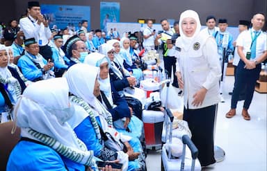 Rabu, 22 April 2026 11:15Gubernur Khofifah Lepas Kloter Pertama Jemaah Haji Embarkasi Surabaya