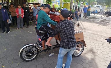 Rabu, 21 Januari 2026 17:29:Ratusan Tukang Becak di Banyuwangi Berlatih Operasikan Becak Listrik