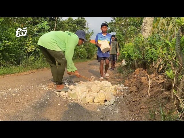 Aksi Heroik Pemuda Tuban Tambal Jalan Rusak Secara Mandiri