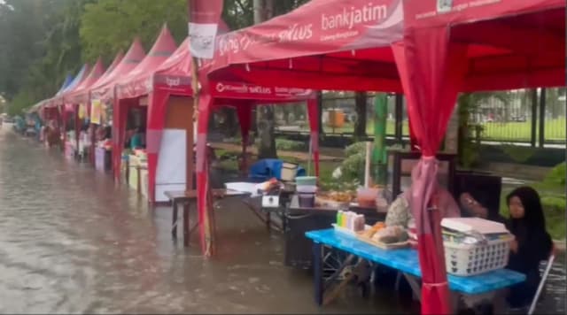 Hujan Deras, Puluhan Stan Bazar Takjil di Depan Pendopo Bupati Bangkalan Terendam Banjir