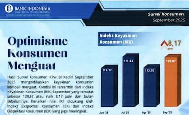 Sabtu, 18 Oktober 2025 12:33Survey Konsumen BI Kediri : Keyakinan Konsumen Kediri Menguat, Tanda Optimisme Ekonomi Terjaga