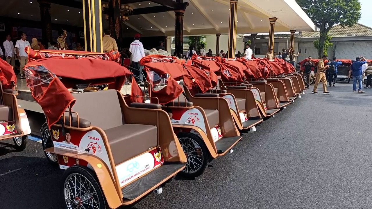 “Semua becak ini, termasuk yang telah diberikan sebelumnya, berasal dari kantong pribadi Presiden Prabowo. Beliau sedih melihat mayoritas tukang becak berusia lanjut,” ujarnya.
