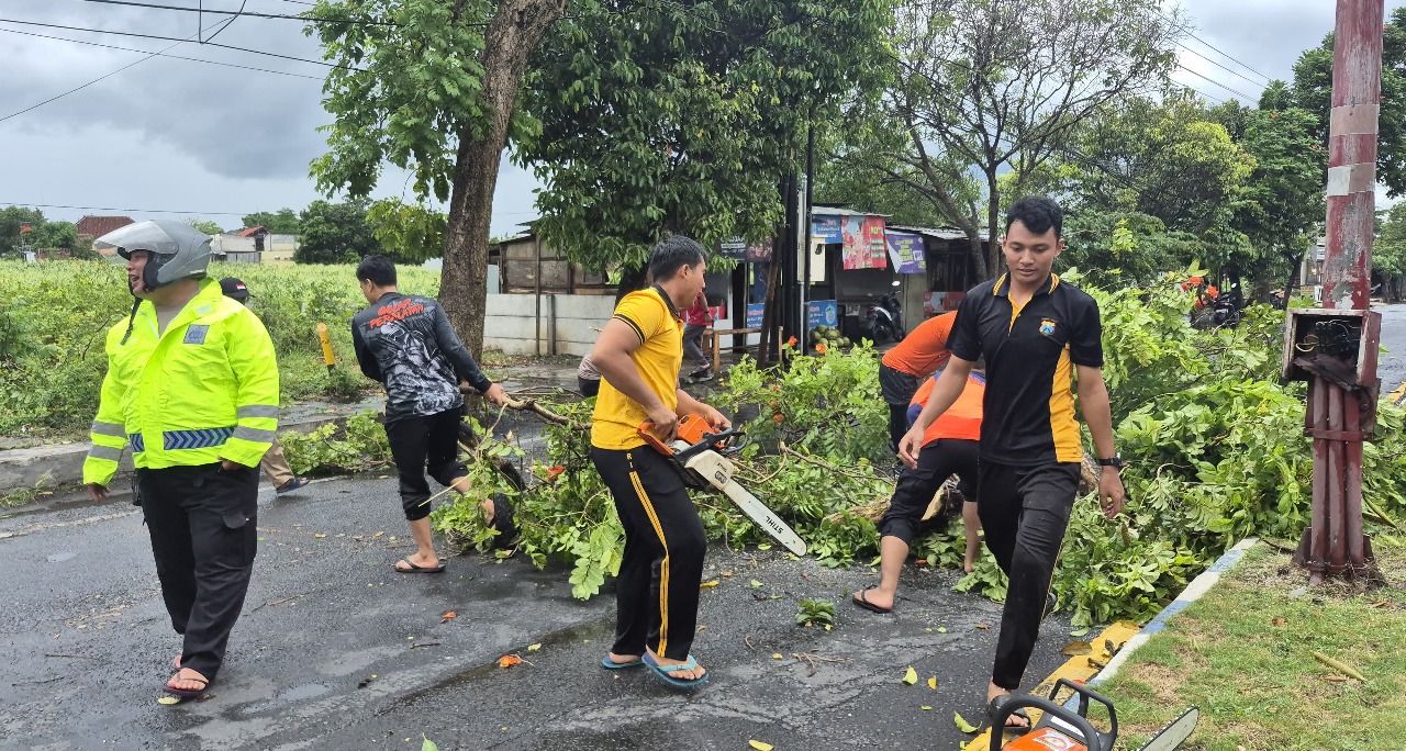 Begitu menerima laporan masyarakat, personel Polresta Banyuwangi langsung diterjunkan ke lokasi untuk melakukan pengamanan area, mengalihkan arus kendaraan, serta membantu proses evakuasi material pohon tumbang.