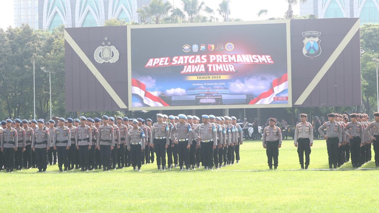 SURABAYA - Polda Jawa Timur resmi membentuk Satgas Premanisme untuk menekan angka kriminalitas menjelang Natal 2025 dan Tahun Baru 2026. Pembentukan satgas ini dilakukan dalam apel Operasi Lilin Semeru 2025 di Mapolda Jatim, Rabu (10/12/2025).