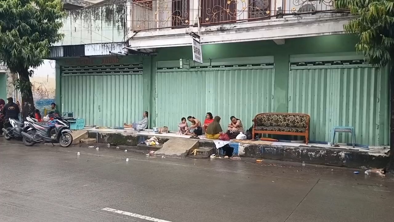 Sejumlah warga memilih bertahan untuk menjaga harta benda, sementara sebagian warga lainnya mengungsi sementara di trotoar jalan dan emper toko di sepanjang jalur Pantura Kraksaan.