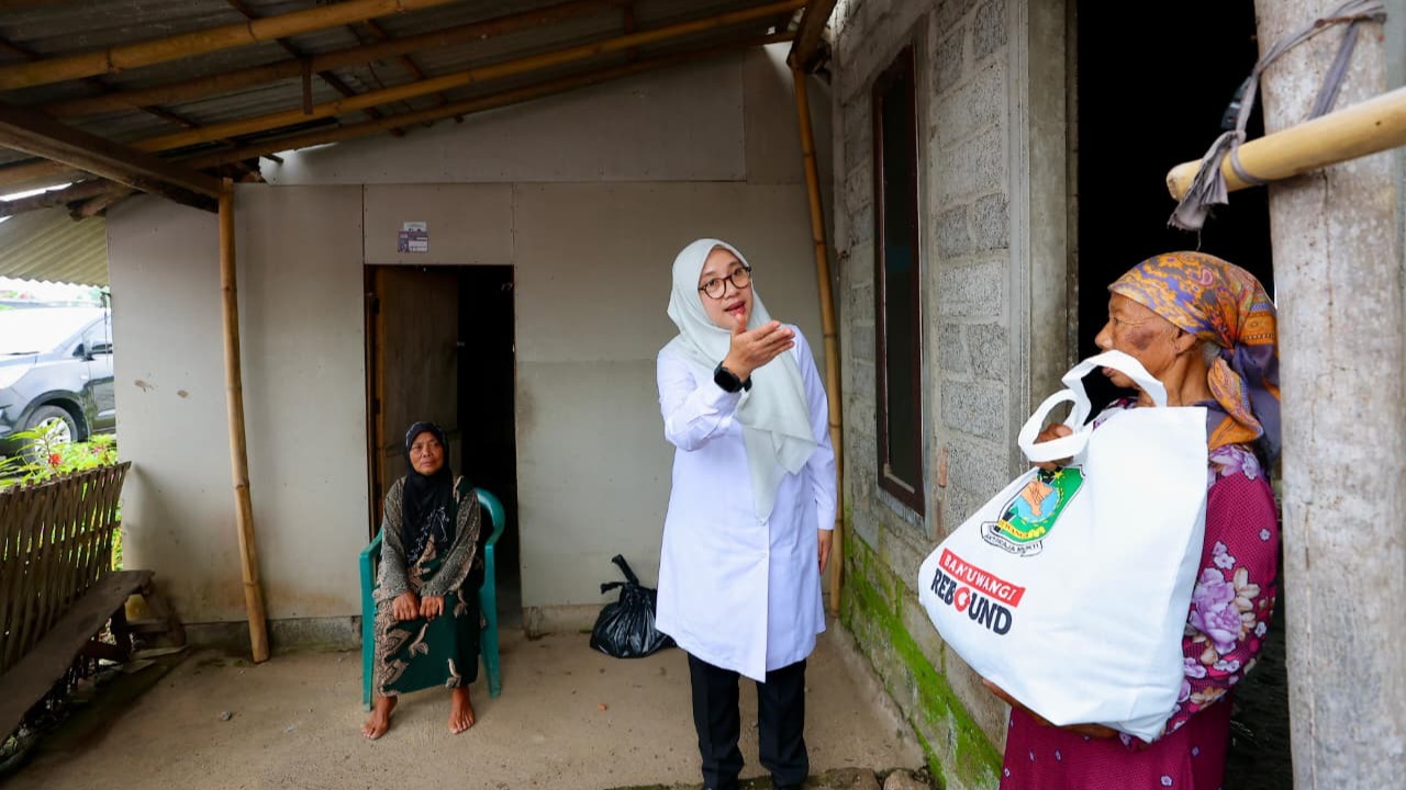 Bupati Banyuwangi Ipuk Fiestiandani serta ribuan ASN mendatangi rumah-rumah keluarga pra sejahtera untuk menyalurkan bantuan paket sembako, Rabu (28 Januari 2026). Di antaranya Bermawi (81), warga Lingkungan Wonosari, RT 02/RW 01, Kelurahan Sobo.
