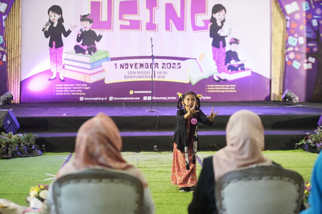 Festival Literasi Using yang berlangsung pada 1 November 2025 lalu ini diikuti 400 pelajar tingkat SD-SMP se-Banyuwangi. Kegiatan yang memasuki tahun ke-5 pelaksanaan ini melombakan tujuh kategori. Yakni Nulis Aksara (Menulis Kalimat Using), Tulis Cerpen, Moco Geguritan (Baca Puisi), Nembang (Menyanyi), Ngewer (Stand Up Comedy) dan Ndongeng (bercerita). Khusus untuk kategori SD, lomba ditambah satu kategori yakni Memengan Sandiworo (Bermain Sandiwara).