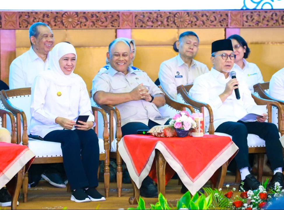 SURABAYA - Gubernur Jawa Timur Khofifah Indar Parawansa bersama Menteri Koordinator Bidang Pangan Zulkifli Hasan menggelar Rapat Koordinasi Penyelenggaraan Program Makan Bergizi Gratis (MBG) di Ruang Hayam Wuruk Kantor Sekretariat Daerah Provinsi Jawa Timur, Surabaya, Kamis (19/2/2026).