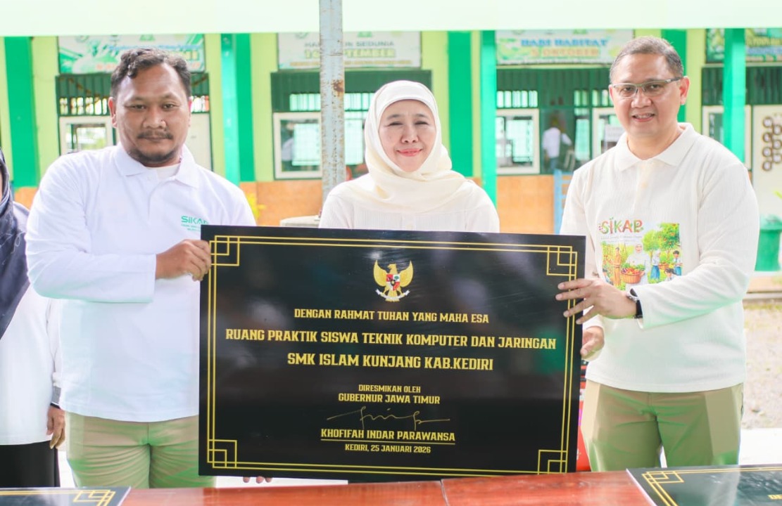 KEDIRI - Gubernur Jawa Timur Khofifah Indar Parawansa meresmikan hasil rehabilitasi dan revitalisasi 26 SMA, SMK, dan SLB negeri maupun swasta di Kabupaten dan Kota Kediri, Minggu (25/1/2026).