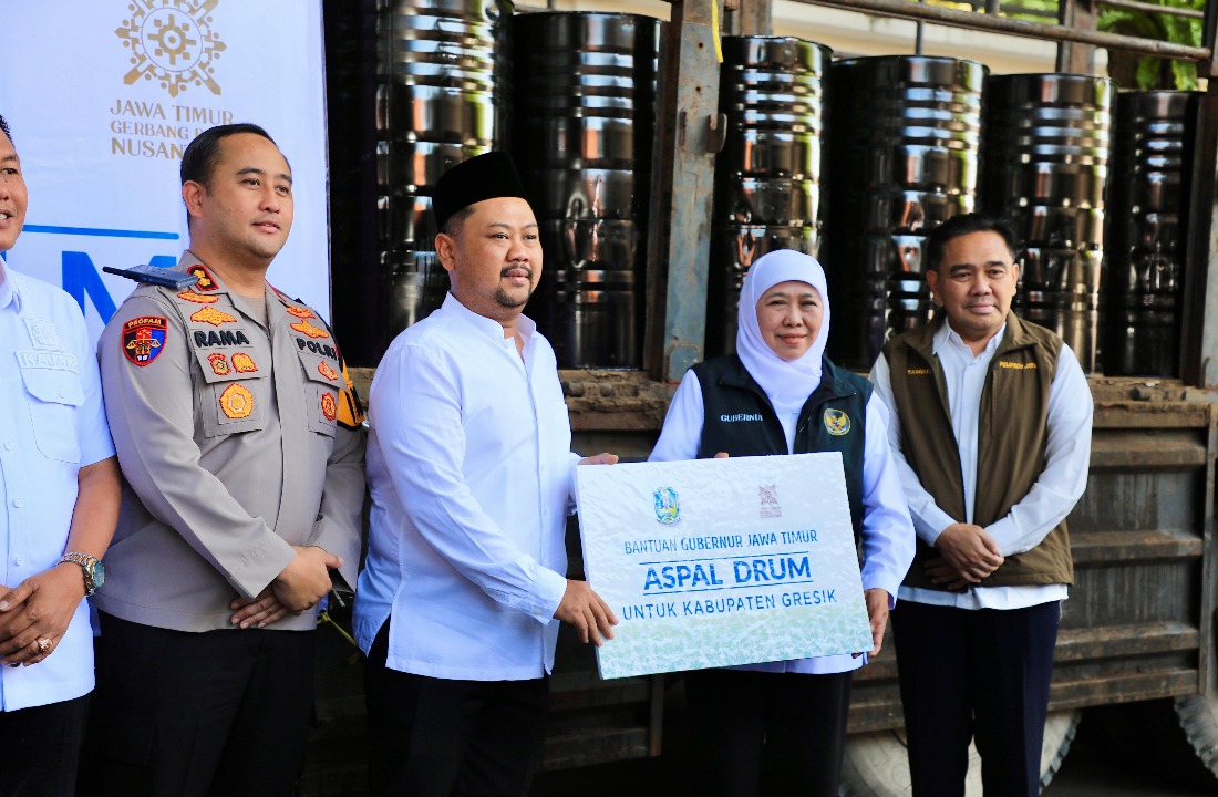 SURABAYA - Pemerintah Provinsi Jawa Timur terus memperkuat kolaborasi pembangunan infrastruktur melalui Program Pembinaan Jalan Kabupaten berupa bantuan aspal drum kepada pemerintah kabupaten/kota.