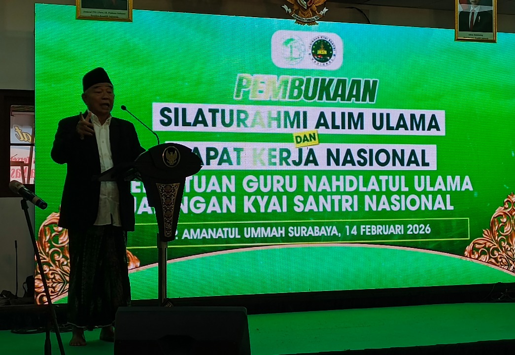 SURABAYA - Gubernur Jawa Timur Khofifah Indar Parawansa menghadiri pembukaan Rapat Kerja Nasional (Rakernas) Persatuan Guru Nahdlatul Ulama (Pergunu) dan Jaringan Kyai Santri Nasional (JKSN) sekaligus peresmian gedung Kantor Pusat JKSN, Sabtu (14/2/2026).