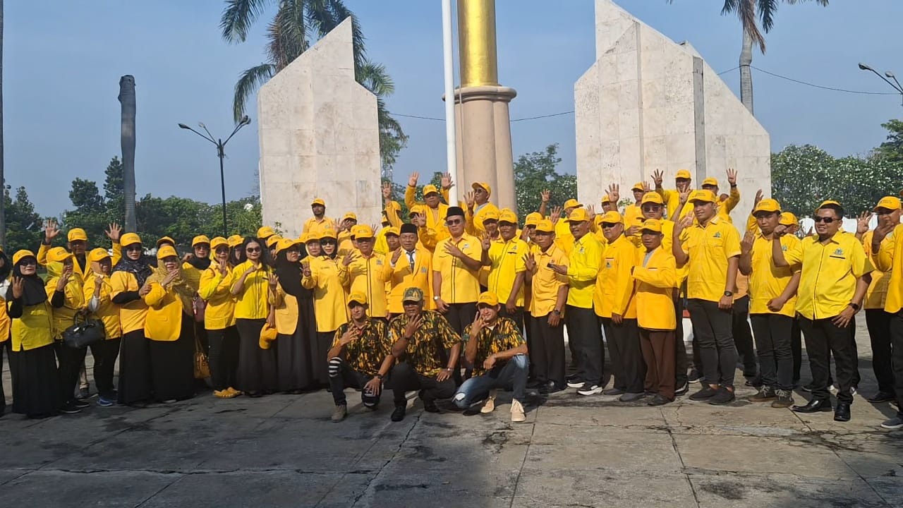 MOJOKERTO - Memperingati Hari Ulang Tahun (HUT) ke-61 Partai Golkar, jajaran Dewan Pimpinan Daerah (DPD) Partai Golkar Kabupaten Mojokerto menggelar ziarah dan tabur bunga di Taman Makam Pahlawan (TMP), Senin (20/10/2025).