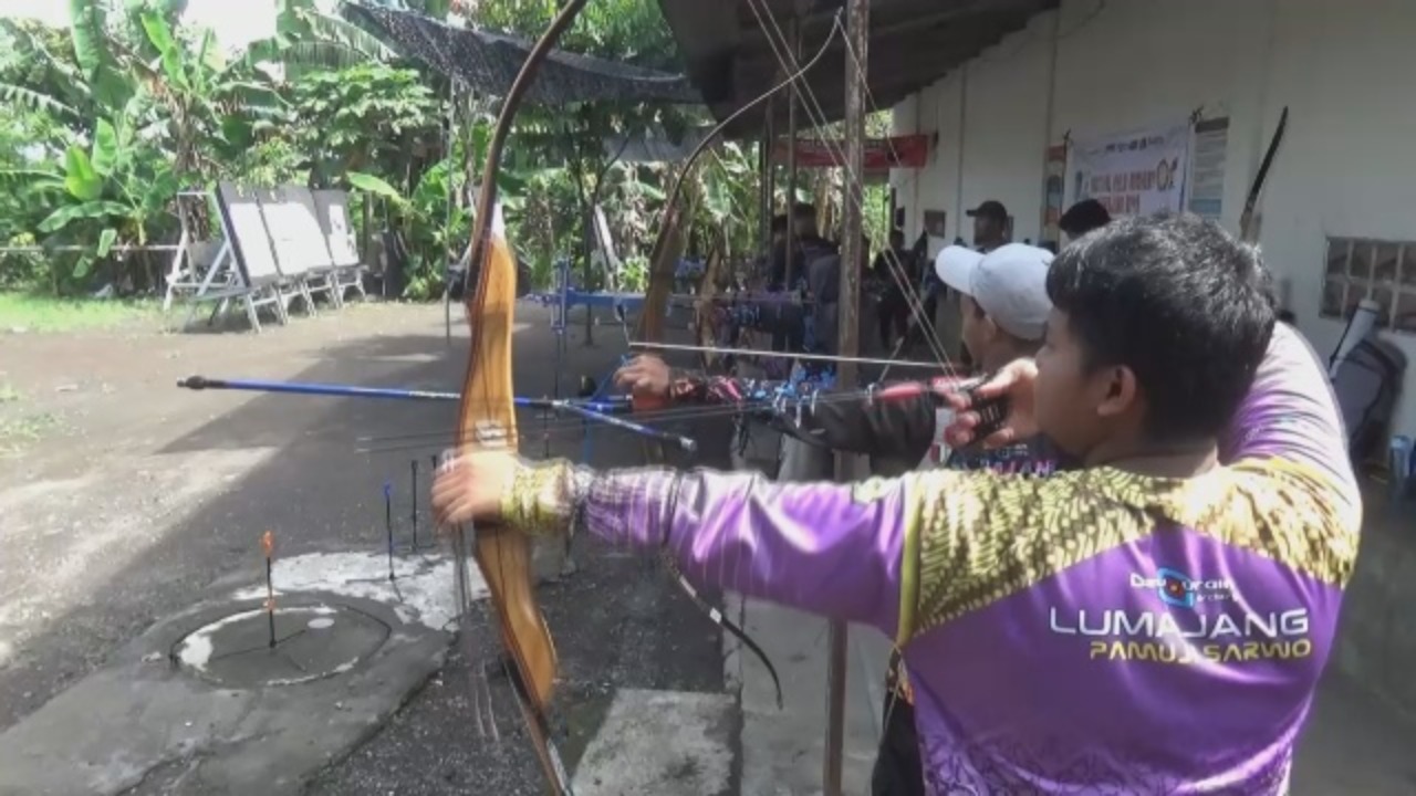 Puluhan anak-anak berusia enam hingga delapan belas tahun ini mengikuti kegiatan belajar memanah di lapangan memanah yang berada di kelurahan jogotrunan, kabupaten lumajang, kamis pagi.