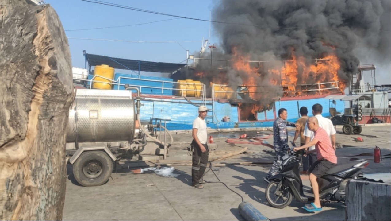 PROBOLINGGO - Kapal Motor Gracias Tanjung Perak terbakar saat bersandar di Pelabuhan Perikanan Pantai Mayangan, Kota Probolinggo, Senin sore (20/4/2026). Kebakaran terjadi sekitar pukul 14.55 WIB saat kapal sedang menjalani proses perbaikan di area Pelabuhan.