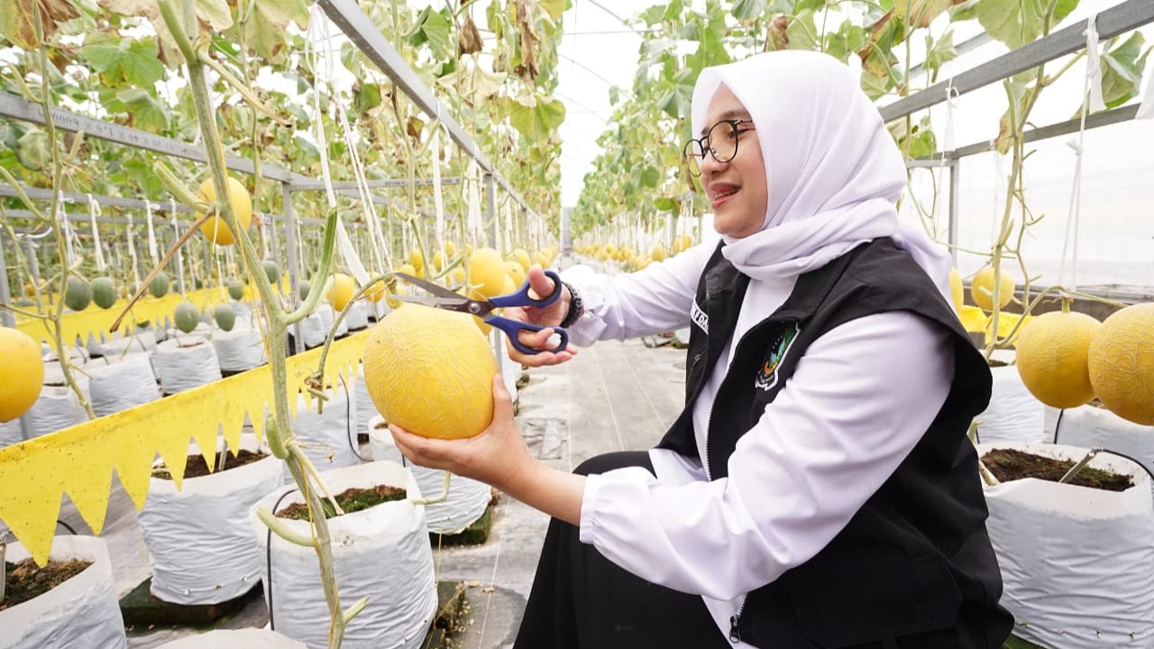 Setiap dua pekan, pertanian greenhouse yang dikelola secara perorangan itu bisa memanen sekitar 1.000 buah melon.