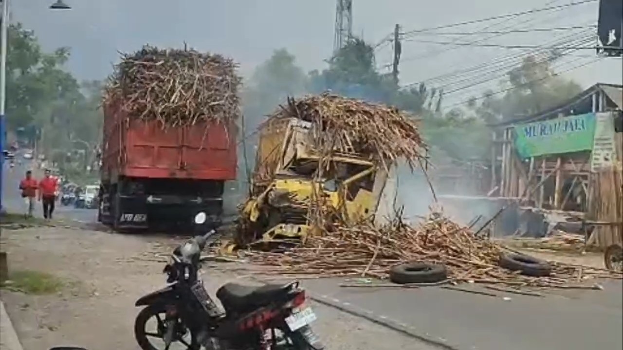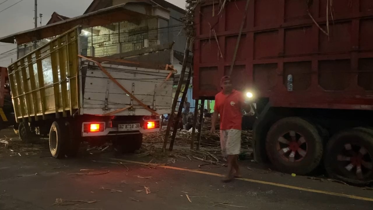 Benturan keras mengenai bagian depan samping truk sebelah kanan. Muatan tebu yang cukup banyak berserakan di jalan, menyebabkan proses evakuasi terhambat.