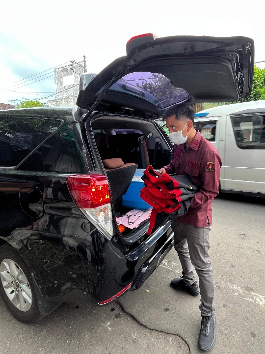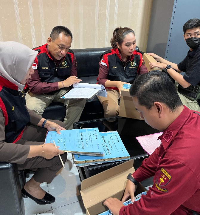 Dalam Penggeledahan tersebut. Tim Penyidik Tindak Pidana Khusus membawa kotak guna menempatkan barang bukti yang akan di sita.