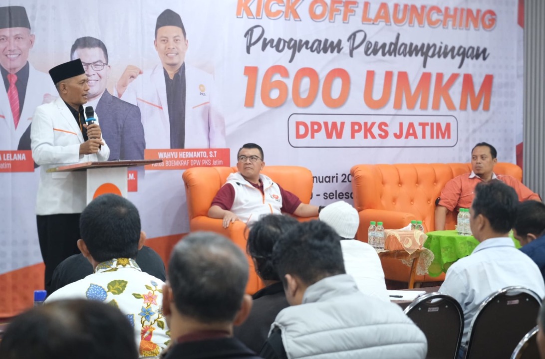 SURABAYA - Partai Keadilan Sejahtera (PKS) Jawa Timur meluncurkan program pendampingan bagi 1.600 pelaku Usaha Mikro, Kecil, dan Menengah (UMKM) yang akan berlangsung selama satu tahun penuh.