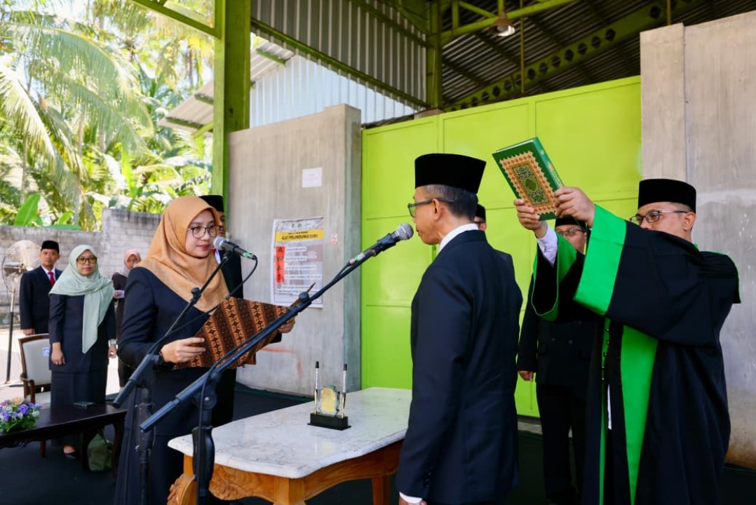 Bupati Banyuwangi Ipuk Fiestiandani melantik Sekretaris Daerah (Sekda), Guntur Priambodo, di Tempat Pengolahan Sampah Reduce, Reuse, Recycle (TPS3R), Desa Balak, Kecamatan Songgon, Senin (22 Banyuwangi 2025). Ini merupakan moment unik karena baru pertama kalinya pelantikan pejabat dilakukan di tempat pengolahan sampah.