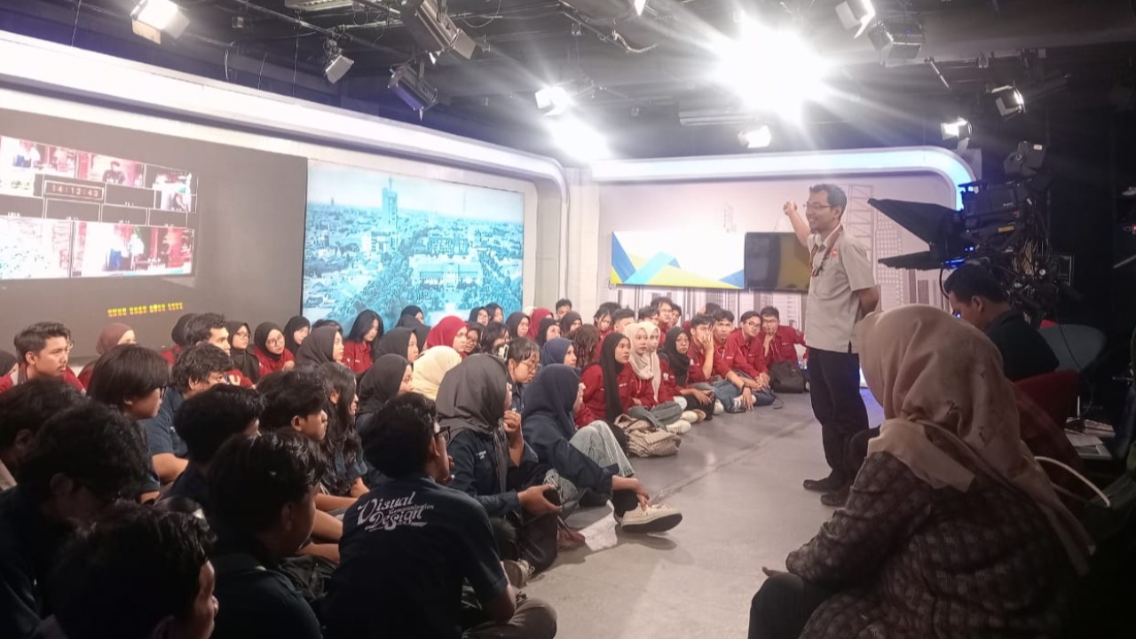 Kunjungan ini bertujuan untuk menambah wawasan mahasiswa mengenai dunia penyiaran dan proses siaran langsung televisi.