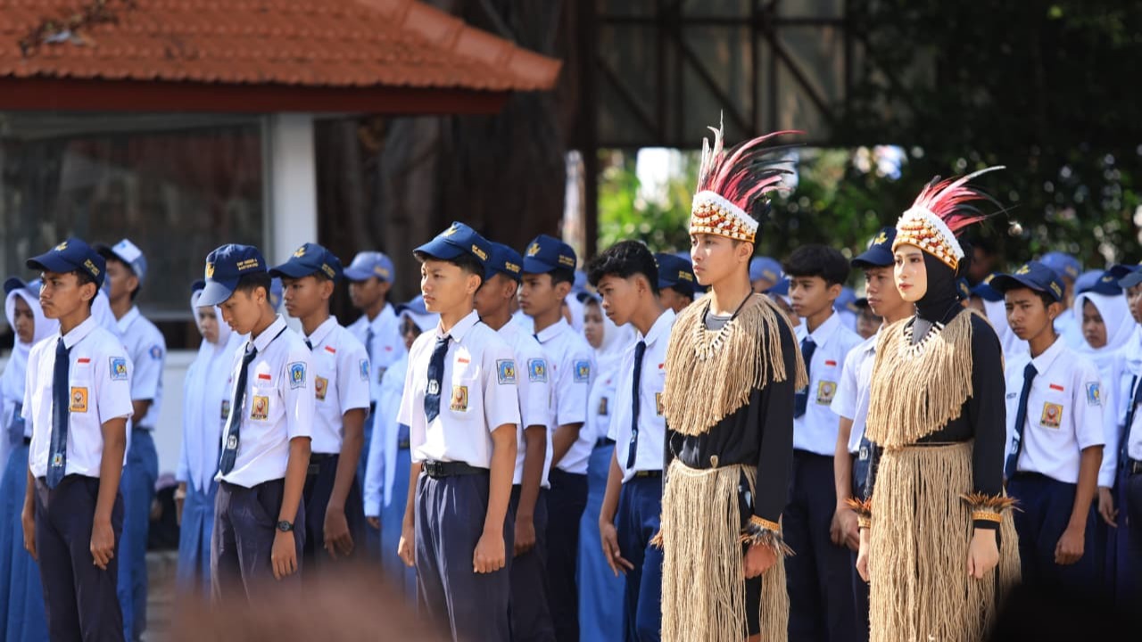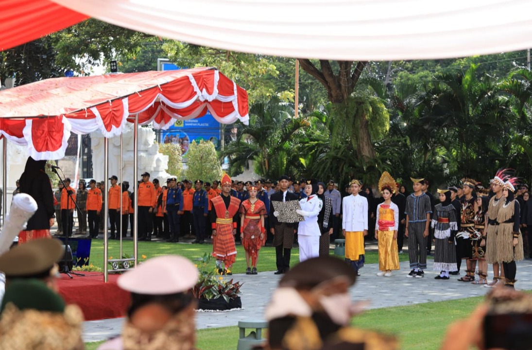 Upacara tersebut diikuti oleh ratusan peserta dari kalangan pelajar, mahasiswa dan ASN yang tampak mengenakan pakaian adat Suku Osing Banyuwangi. Ada pula paskibra beserta korps musik pengiring upacara.