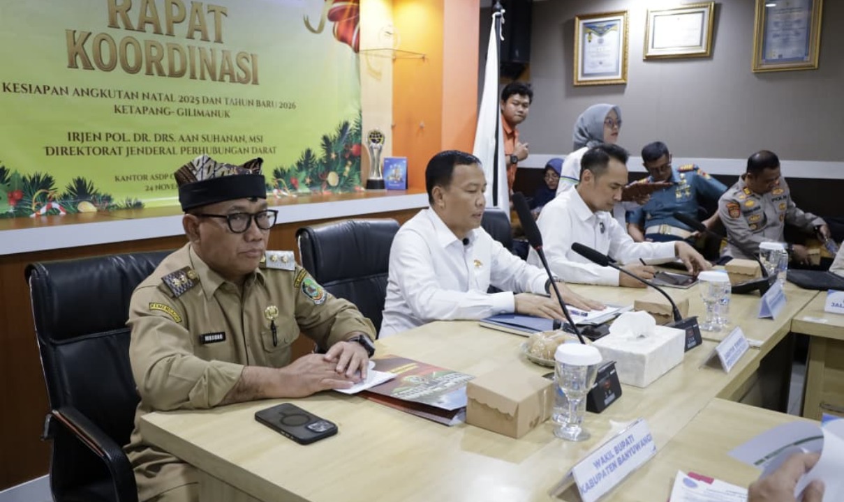 Dipimpin Direktorat Jenderal Perhubungan Darat Irjen Pol (Purn) Aan Suhanan, rakor ini bertujuan meningkatkan pelayanan angkutan penyeberangan dan mengantisipasi lonjakan arus selama libur panjang Nataru 2025/2026 di Pelabuhan penyeberangan Ketapang-Gilimanuk.