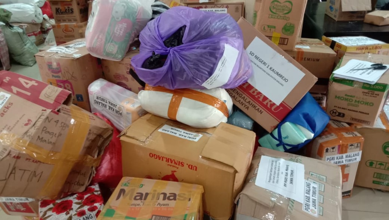 Adapun bantuan yang diberikan dan dikumpulkan PGRI Kabupaten Malang. Meliputi sembako, pakaian layak pakai baik dewasa, anak-anak maupun bayi, makanan instan, serta pampers, susu dan sabun mandi maupun cuci.