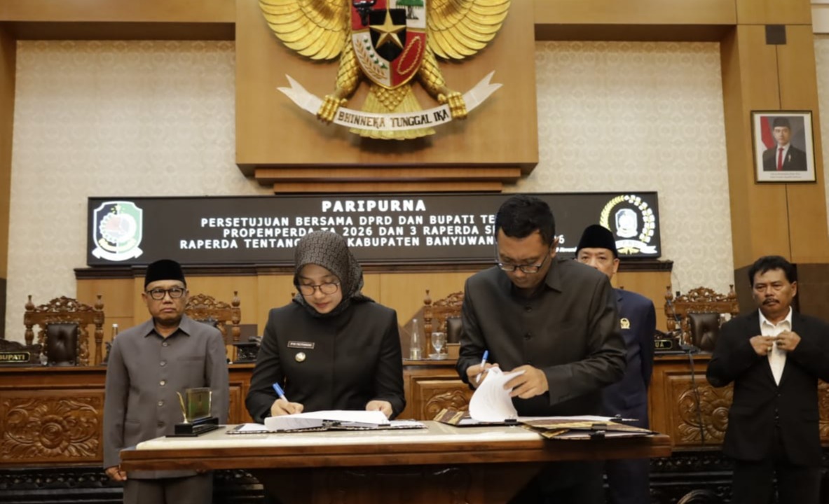 BANYUWANGI – Pemkab Banyuwangi bersama DPRD menyepakati Rancangan Peraturan Daerah (Raperda) Anggaran Pendapatan dan Belanja Daerah (APBD) Banyuwangi 2026 menjadi Peraturan Daerah (Perda) dalam rapat paripurna, Sabtu (30 November 2025) malam.