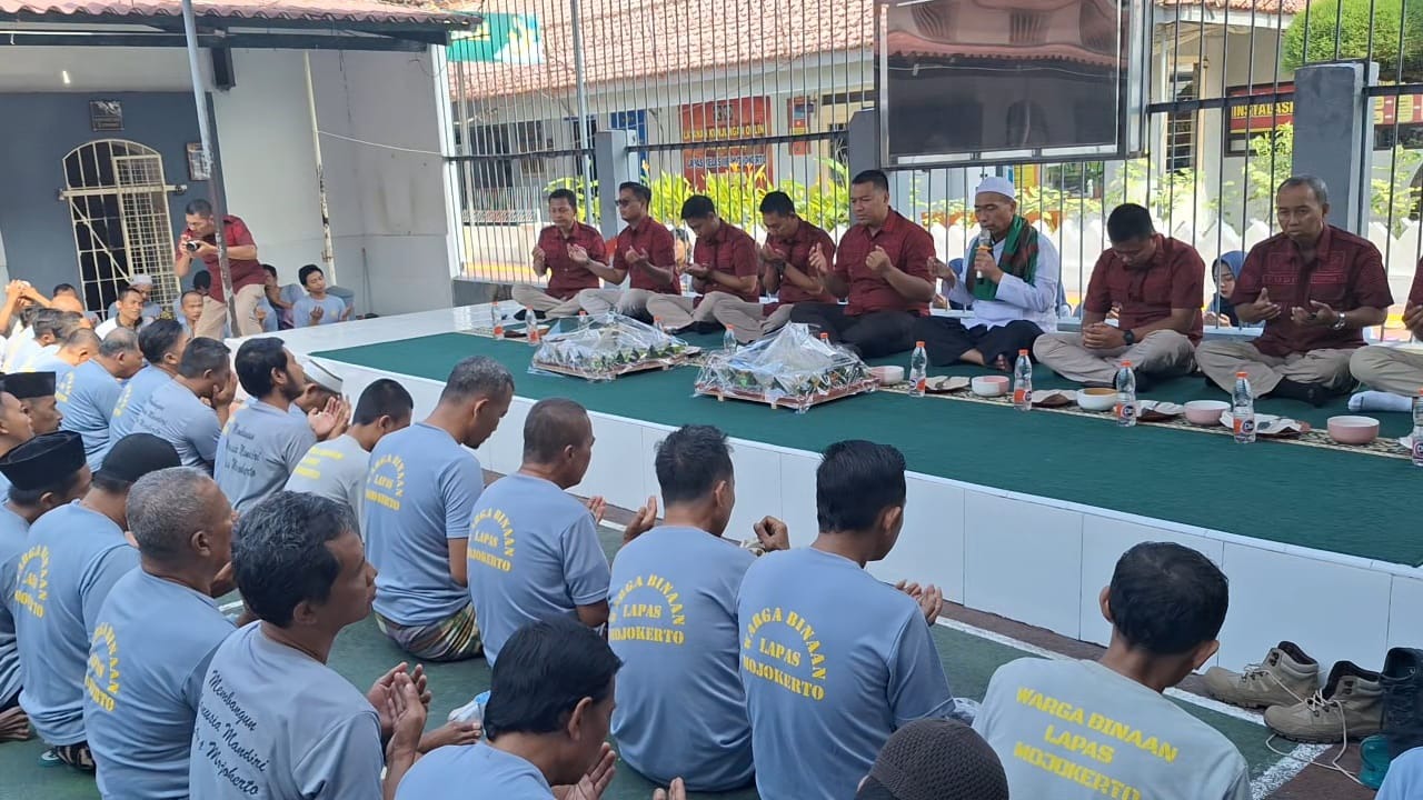 MOJOKERTO - Lembaga Pemasyarakatan (Lapas) Kelas IIB Mojokerto menggelar tradisi Megengan menyambut bulan suci Ramadhan, Kamis (27/2/2025) pagi.