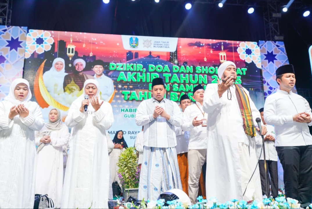 “Maka kita akhiri 2025 dan menyambut 2026 dengan doa, dzikir, istighotsah dan shalawat. Mudah mudahan ini cara kita menjemput ridha dan barakah Allah untuk kita semua, barakah Jatim, barakah Indonesia, barakah bulan Rajab,” jelasnya.