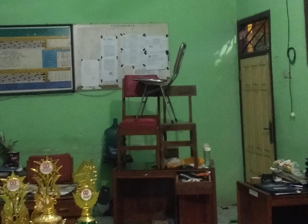 Disampaikan Sholihin, kondisi ruang guru acak-acakan setibanya dalam gedung tersebut. Kondisi plafon jebol, buku-buku di meja berserakan, dan ada kursi yang ditumpuk tepat di bawah plafon yang jebol.