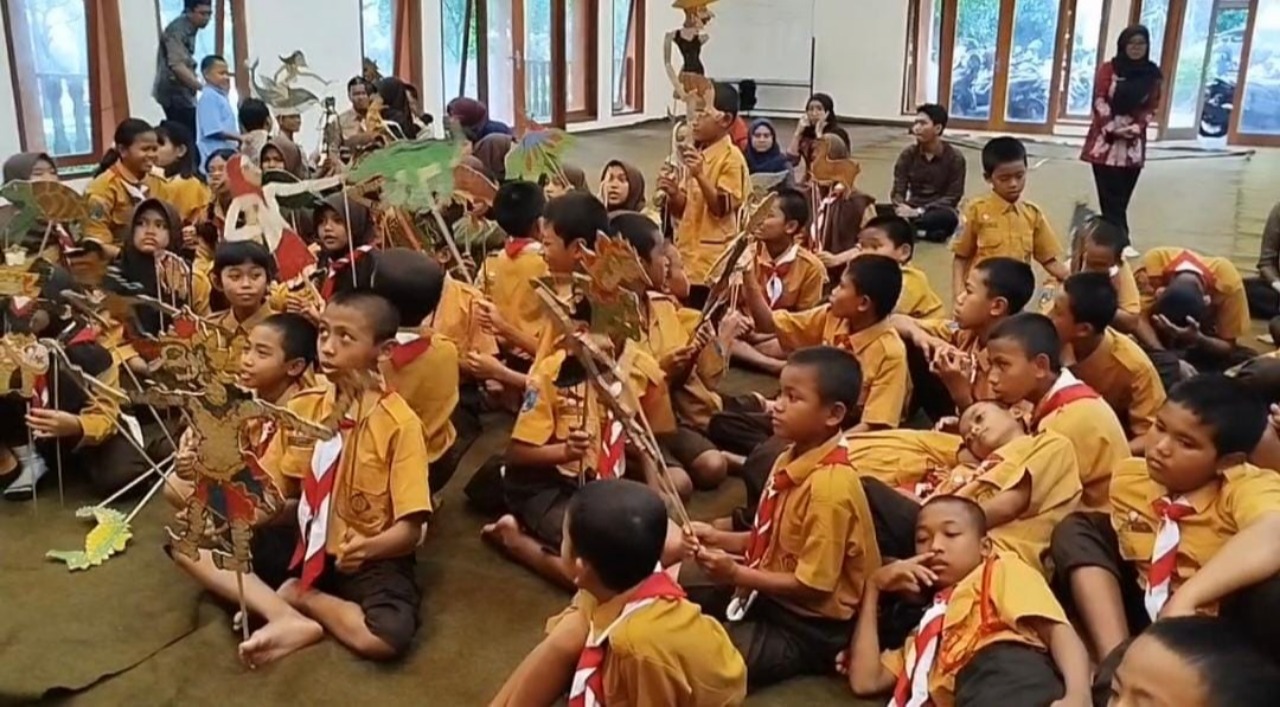 Tak hanya menampilkan gelaran wayang, DKB juga mempersilakan siswa untuk menyentuh dan memperagakan langsung dengan membagikan puluhan wayang bambu yang telah mereka sediakan.