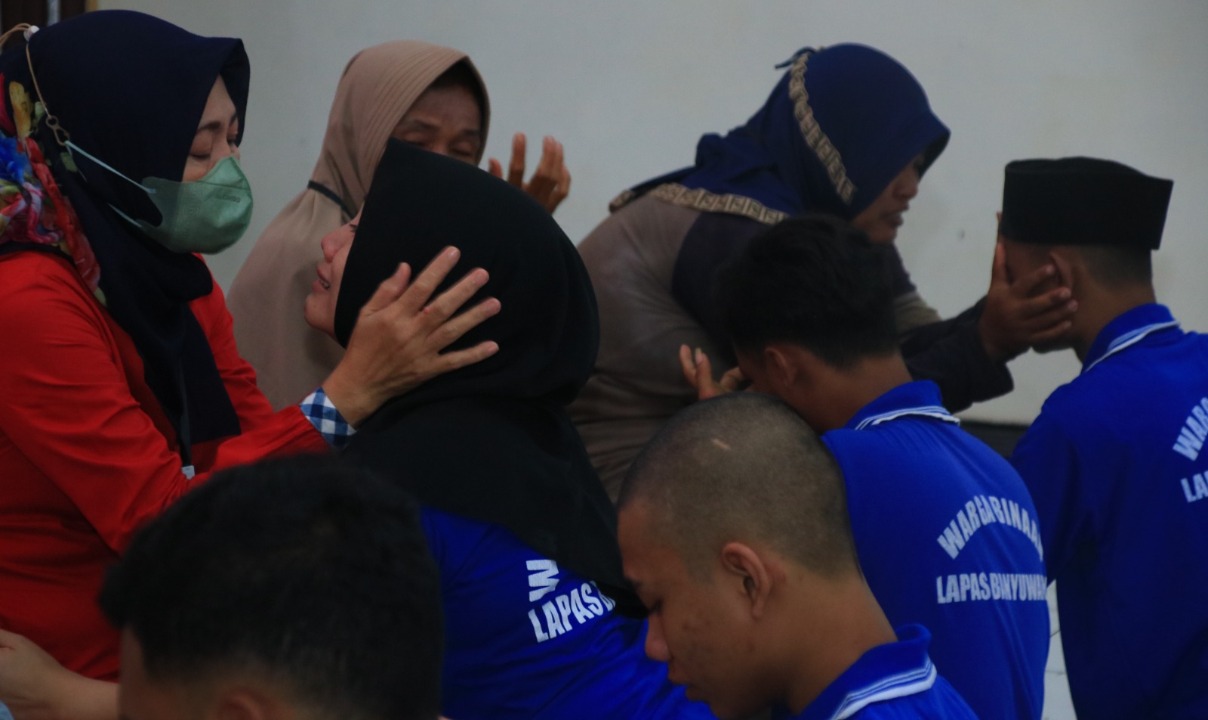 Pantauan di lokasi menunjukkan suasana haru yang begitu kental menyelimuti area kegiatan. Tak pelak, air mata menetes deras, baik dari mata sang ibu maupun para warga binaan.