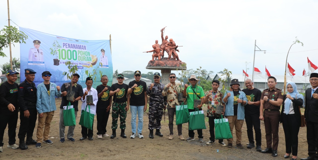KOTA MALANG - Langkah konkret dalam memperingati Hari Pahlawan ditunjukkan Wali Kota Malang, Dr. Ir. Wahyu Hidayat, MM, dengan memimpin penanaman 1.000 pohon durian di area Monumen Hamid Rusdi, Kelurahan Wonokoyo, Senin (10/11/2025). Aksi penghijauan massal ini tidak hanya bertujuan melestarikan alam, tetapi juga dimaknai sebagai kelanjutan perjuangan para pahlawan di era modern.