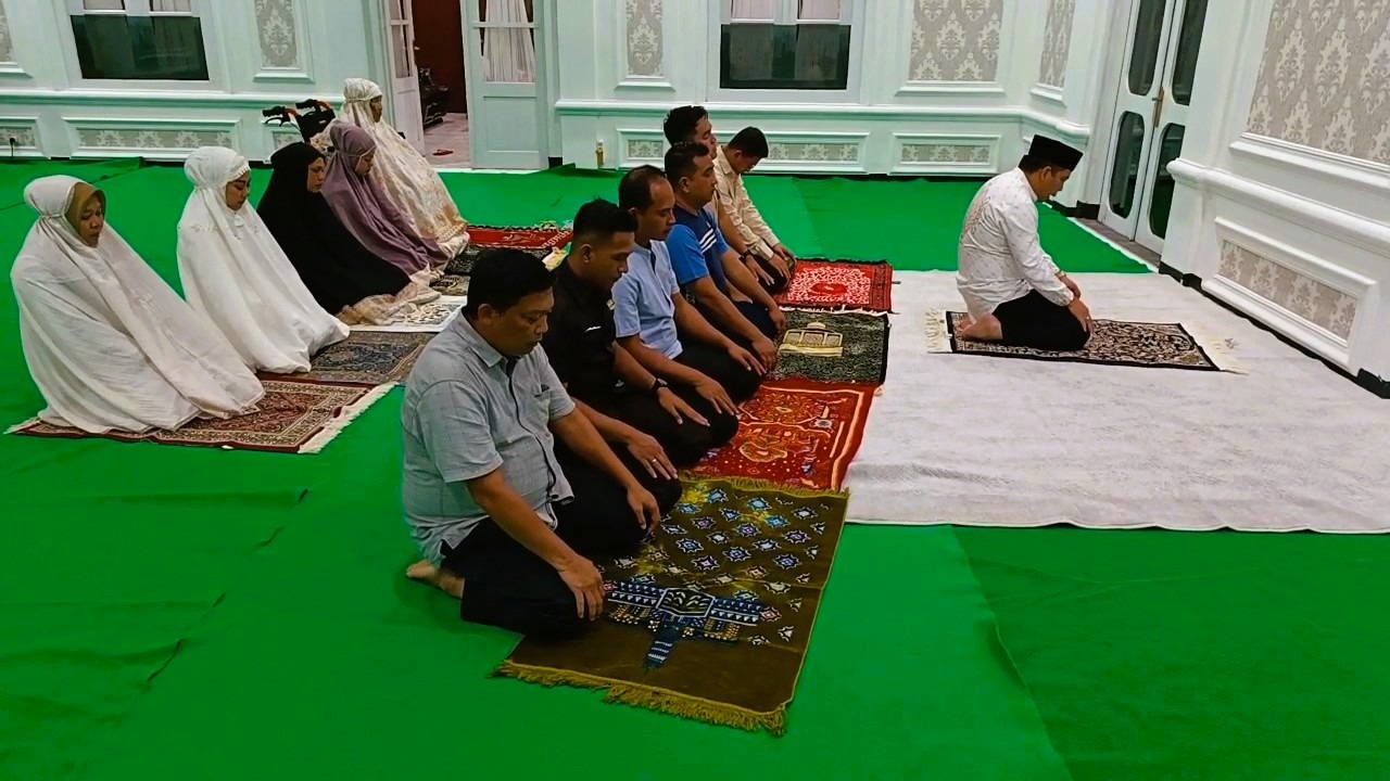 Salat diawali dengan salat sunnah, dilanjutkan shalat Isya’, lalu tarawih berjamaah. Tradisi tarawih pertama bersama keluarga dengan Wali Kota sebagai imam sudah menjadi kebiasaan rutin setiap Ramadan.