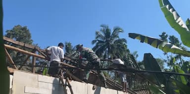 Babinsa dan Warga Renovasi Rumah Lansia di Lumajang