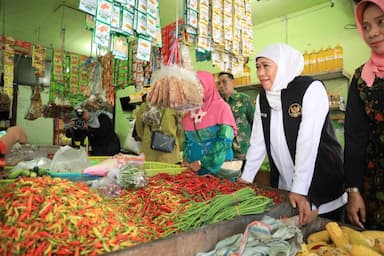 Tinjau Pasar Krian Lama, Gubernur Khofifah Pastikan Stok Bahan Pokok Aman