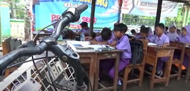 Siswa SD di Jombang Terpaksa Belajar Parkiran Karena Ruang Kelas Ambruk