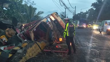 Rem Blong di Tikungan Gumitir, Truk Tronton Terguling Timpa Dua Kendaraan