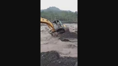 Alat Berat Dan Truk Penambang Pasir Terjebak Lahar