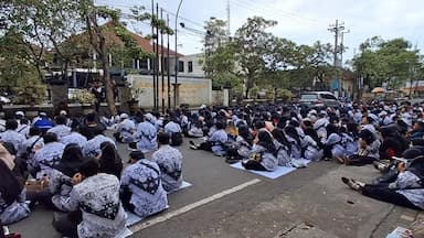 Buntut Pemecatan Kepsek SMKN 1 Ponorogo, Ribuan Guru Geruduk Kantor Dindik Jatim Cabang