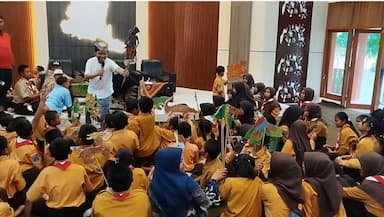 Siswa Sekolah Rakyat di Banyuwangi Dihibur Seniman Dalam Pertunjukan Wayang Bambu