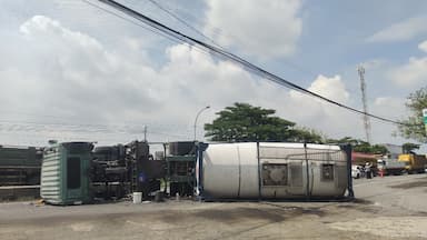 Tabrak Pembatas Jalan, Truk Muat Bahan Cat Terguling di Ambeng-Ambeng Gresik