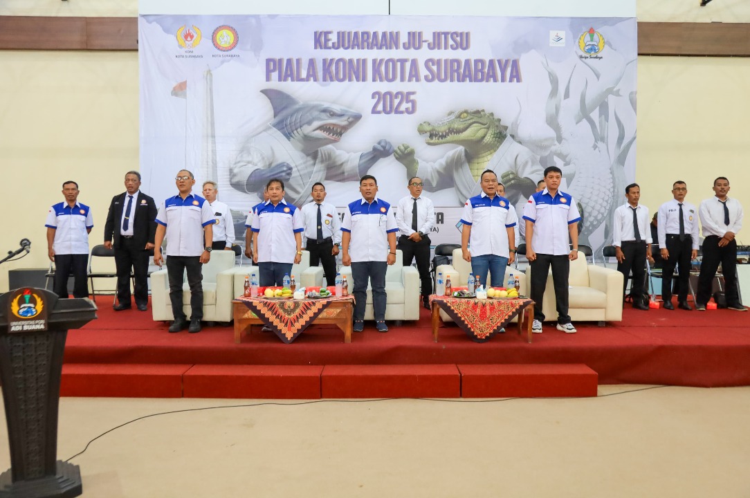 SURABAYA - Komite Olahraga Nasional Indonesia (KONI) bersama Pengurus Besar Ju-jitsu Indonesia (PBJI) Kota Surabaya menggelar Kejuaraan Ju-jitsu Piala KONI Kota Surabaya 2025 pada Sabtu–Minggu, 20–21 Desember 2025, di Graha Hasta Brata universitas PGRI Adi Buana Surabaya.