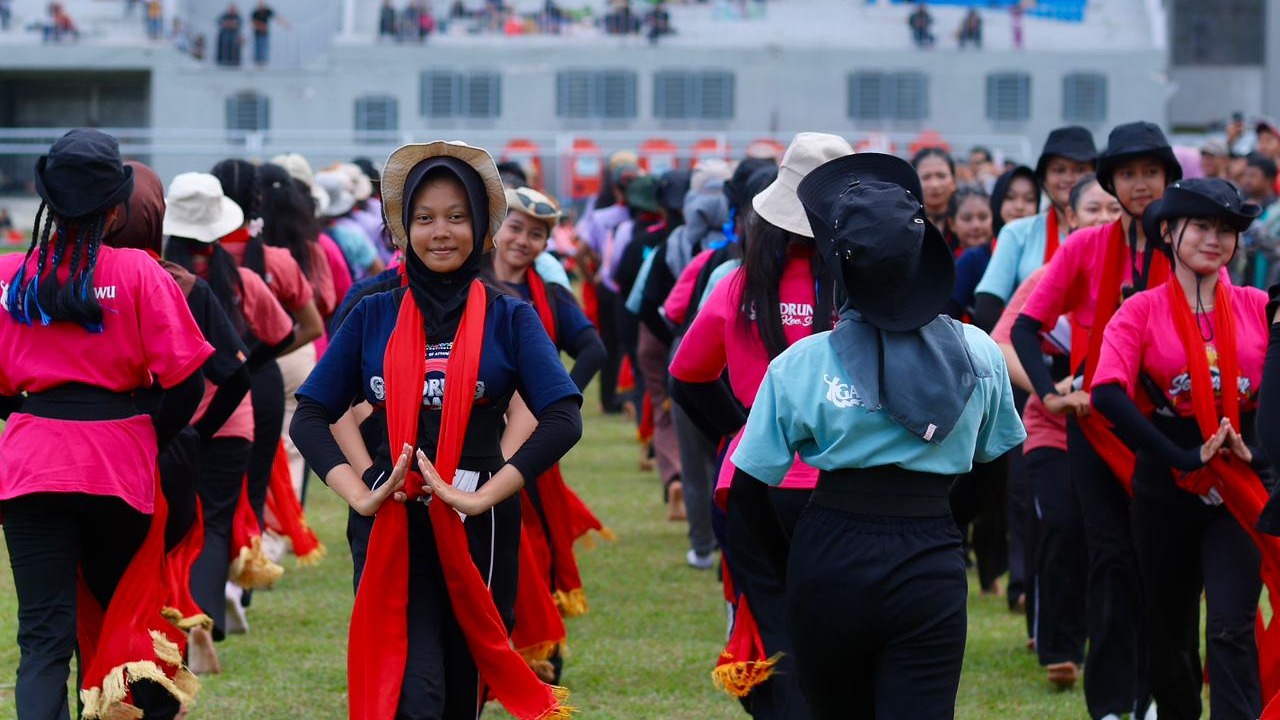 Ribuan penari dari berbagai usia mulai 4 tahun hingga SMA, termasuk Gandrung senior, tampak bersemangat berlatih formasi dan gerakan.