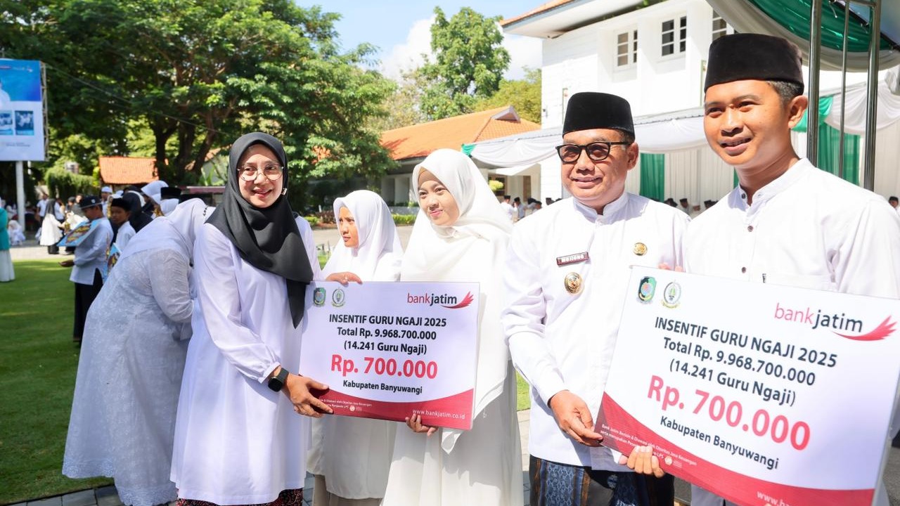 Insentif tersebut diserahkan Ipuk saat Upacara Hari Santri Nasional, di Halaman Kantor Bupati Banyuwangi, yang dihadiri ribuan santri dan guru ngaji, Rabu (22 Oktober 2025).
