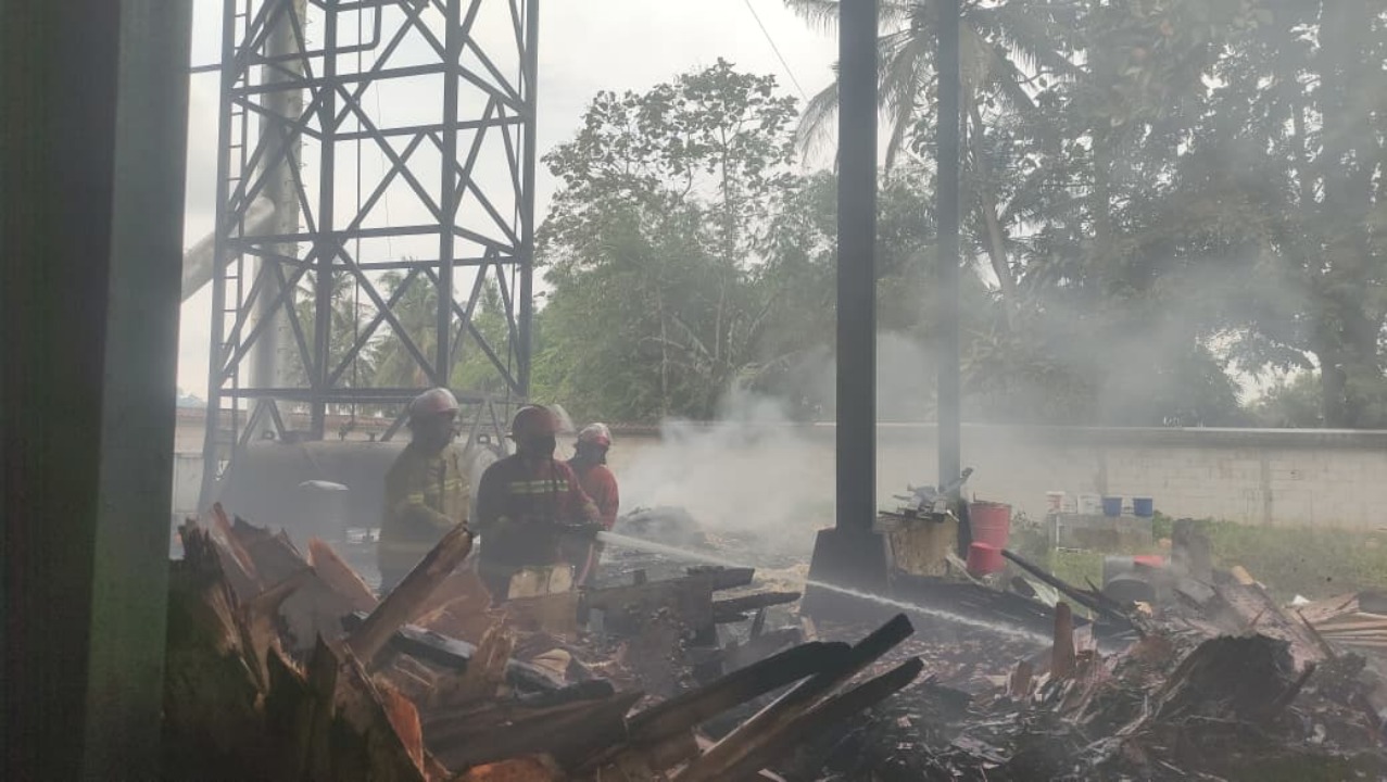 Api diduga berasal dari percikan listrik pada dinamo pompa tandon oli boiler yang kemudian menyambar tumpukan limbah kayu di area pabrik.