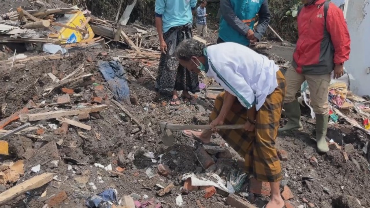 Sementara itu selama masa tanggap darurat, tim gabungan tni,polri dan relawan membantu warga mengevakuasi barang-barang berharga keluar dari lokasi terdampak, zona merah yang berbahaya.