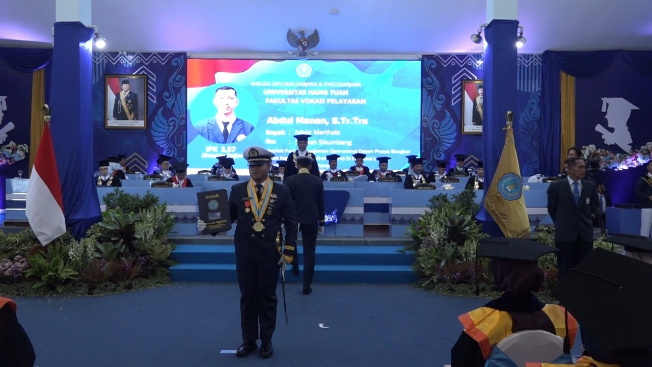 Momen wisuda kali ini juga menobatkan Mohammad Reza Trycahya, S.AB. sebagai Wisudawan Terbaik Universitas Hang Tuah 2025.
